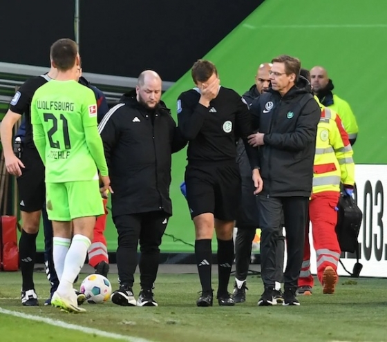 이날 경기 결과보다 많은 관심을 받은 장면이 있었다. 전반 초반 쾰른 수비수가 걷어낸 공이 그대로 부심 얼굴을 강타했다. 워낙 가까운 거리에서 공이 강하게 날아갔기에 피하기 어려웠다.