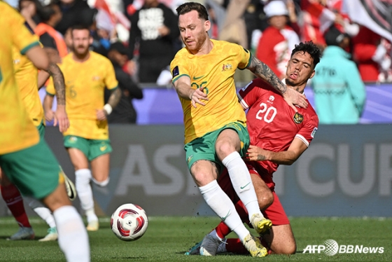 인도네시아의 국제축구연맹(FIFA) 랭킹은 146위, 호주는 25위다. 아무래도 전력차가 있다. 조별리그 분위기도 달랐다. 인도네시아는 1승2패(승점 3) D조 3위를 기록했다. A조 3위 중국, F조 3위 오만(이상 2무 1패)보다 성적이 좋아 어렵게 16강 진출 티켓을 거머쥐었다. 호주는 B조 1위(2승1무)였다.