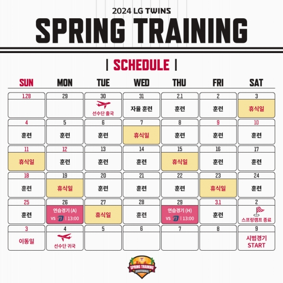 LG 트윈스는 "오는 30일 2024년 전지훈련을 위해 미국 애리조나로 출국한다"고 28일 밝혔다.