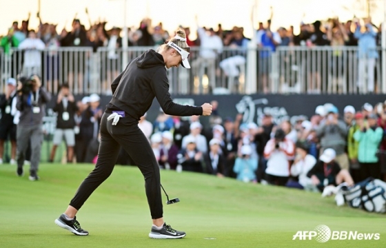 먼저 경기를 마친 리디아 고에 이어 한 타 뒤진 넬리 코다가 18번 홀(파4)에 나섰다. 세컨드샷을 바로 옆에 떨군 뒤 버디를 작성하며 승부는 결국 연장으로 향했다.