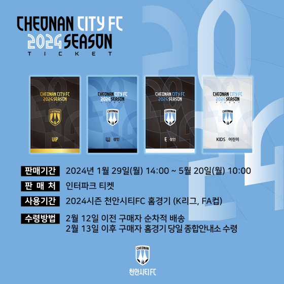 [스포탈코리아] 한재현 기자= 천안시티FC가 29일 오후 2시부터 2024년 시즌권 판매를 시작한다.