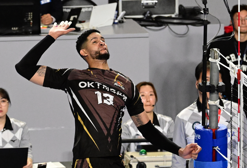 지난달만 해도 위기였다. OK금융그룹은 3라운드 6경기에서 전패했다. 특히 첫 경기인 우리카드전(세트스코어 2-3)을 제외하면 전부 셧아웃 패배를 당했다. 순위도 곤두박질을 쳤다. 1라운드와 2라운드 각각 4위와 3위를 기록했던 OK금융그룹은 어느새 하위권까지 뒤처졌다.