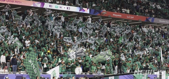 위르겐 클린스만 감독이 경계했던 것처럼 사우디 3만여명 팬들의 위압감을 엄청났다. 카타르가 사우디에 인접하다는 특징 때문에 이번 대회 조별리그부터 사우디 팬들의 응원은 엄청났다. 이날도 마찬가지였다. 킥오프 3~4시간 전부터 에듀케이션 스타디움 주변은 사우디 팬들이 장악한 상태였다. 사우디를 상징하는 초록색 옷에 한 손에는 사우디 국기를 들고 응원가를 부르며 입장했다.