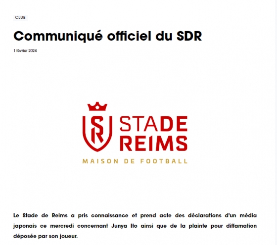 이토의 소속팀도 공식 성명서를 냈다. 이토는 2022~2023시즌 프랑스 리그1에서 35경기 6골 5도움을 기록하는 등 눈에 띄는 활약을 선보이며 스타드 드 랭스 주전으로 인정받았다. 2023~2024시즌에도 여전히 위협적이었다. 17경기 2골 4도움을 올리는 등 주축 측면 공격수로 뛰었다. 스타드 드 랭스는 이토가 성범죄 혐의에 휘말리자 공식 채널에 "구단도 이토에 대한 일본 언론의 보도를 봤다. 명예훼손 고소를 확인했다"라며 "스타드 드 랭스는 이토의 인간적 자질과 행동에 대해 의심하지 않겠다. 여전히 이토를 소속팀 선수로 생각하고 있다. 구단은 일본 사법 조사를 뒷받침할 수 있는 어떠한 근거도 갖고 있지 않다. 스타드 드 랭스는 여전히 이토를 지지한다"라고 밝혔다.