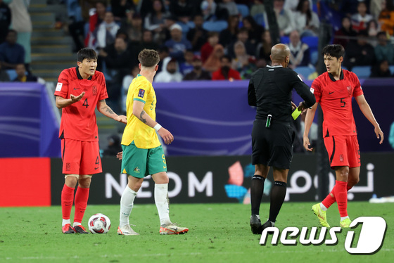 한 차례 레드카드를 꺼내기도 했다. 연장 전반 막바지 황희찬의 돌파 과정에서 호주 미드필더 에이든 오닐(스탕다르 리에주)이 과격한 태클로 저지했다. 황희찬의 발목을 노린 듯했다. 주심은 온 필드 리뷰를 통해 해당 장면을 다시 확인했다. 최초 판정은 옐로카드였지만, 퇴장으로 번복됐다. 한국은 경기 끝까지 한 골 차 리드를 지키며 4강 진출에 성공했다.