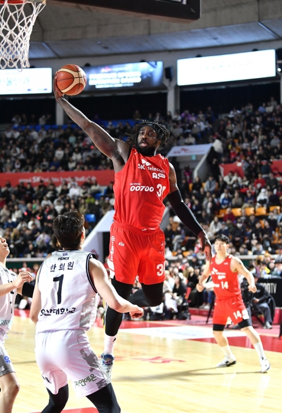 이날 경기는 배스와 워니의 싸움이라고 해도 과언이 아니었지만 워니가 존재감을 드러내는 사이 배스의 득점이 좀처럼 터지지 않았다. 침묵하던 배스는 1쿼터 6분여가 지나 호쾌한 덩크로 첫 득점을 올렸다. 이어 수비 리바운드에 이은 골밑슛으로 연속 4득점했다. 하지만 KT가 이지샷을 놓치며 좀처럼 점수를 좁히지 못했다. 워니의 버저비터 3점이 터진 SK가 1쿼터를 22-12로 앞선 채 종료됐다.