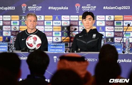 모두가 김민재 결장에 주목하는 분위기다. 5일 카타르 도하의 메인미디어센터에서 한국-요르단 4강전 공식 기자회견이 열렸다. 이 자리에 참석한 클린스만 감독과 황인범(즈베즈다)을 향해 질문이 쏟아졌다. 요르단 공격을 어떻게 막을 것인지에 대한 내용이었다. 한 외신 기자는 '이번 대회 한국의 수비가 좋지 못했다. 요르단 공격을 어떻게 막을 것인가'라고 클린스만 감독에게 질문했다. 황인범을 향해서는 '다음 경기 김민재가 뛰지 못한다. 수비적으로 어떤 대비를 할 것인가'라고 말을 던졌다.