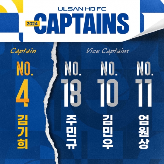 [스포탈코리아] 이현민 기자= 울산 HD가 2024시즌 선수단을 이끌 주장단을 발표하며 다가오는 개막을 향한 기대감을 더했다.