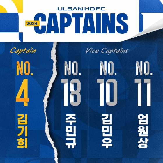 기존 김기희 주장, 주민규 부주장 체제에 두 명의 부주장이 추가됐다. 2024시즌에 앞서 울산에 합류한 김민우(34)와 핵심 공격수 엄원상(26)이 캡틴 김기희를 돕는다.