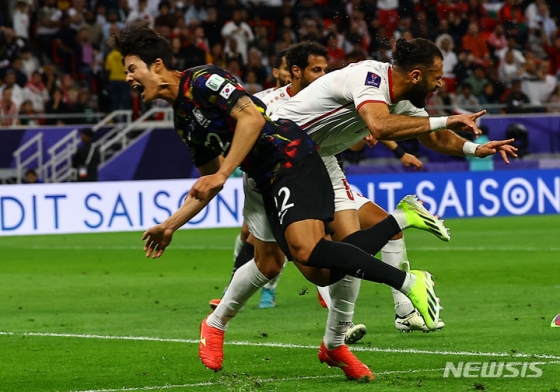 전반 28분 한국이 페널티킥(PK) 판정을 받았다가 비디오판독(VAR) 후 PK가 취소되며 기회가 무산됐다. 설영우가 요르단 수비수에게 발목을 밟힌 것처럼 보였지만 VAR 결과 설영우의 발이 좀더 위에 있었다고 주심이 판단했다.