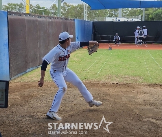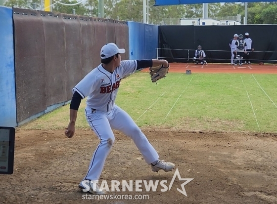 7일 호주 시드니 블랙타운 인터내셔널 베이스볼파크 두산 베어스의 스프링캠프 현장. 3번째 불펜 피칭을 앞두고 현장 관계자들의 시선이 집중됐다. 올 시즌 신인이자 전체 2순위로 입단한 우투수 김택연(19)의 등판 때가 찾아왔기 때문이다.