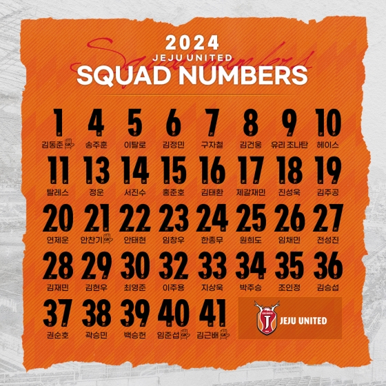 [스포탈코리아] 한재현 기자= 제주유나이티드가 2024시즌 선수단 등번호를 공개했다.