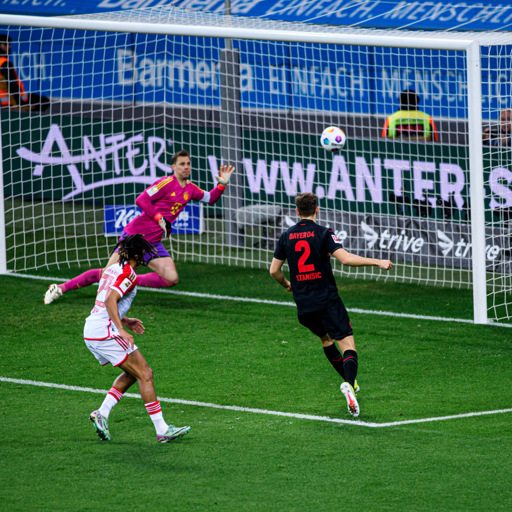 전반 18분 만에 홈팀 레버쿠젠이 앞서나갔다. 스타니시치가 크로스를 강한 오른발 슈팅으로 골망을 갈랐다. 노이어가 몸을 날렸지만, 순간 뮌헨의 수비진이 무너진 것이 컸다. 안드리흐의 크로스 당시 뮌헨 수비수들은 공을 쳐다만 보고 있었다.