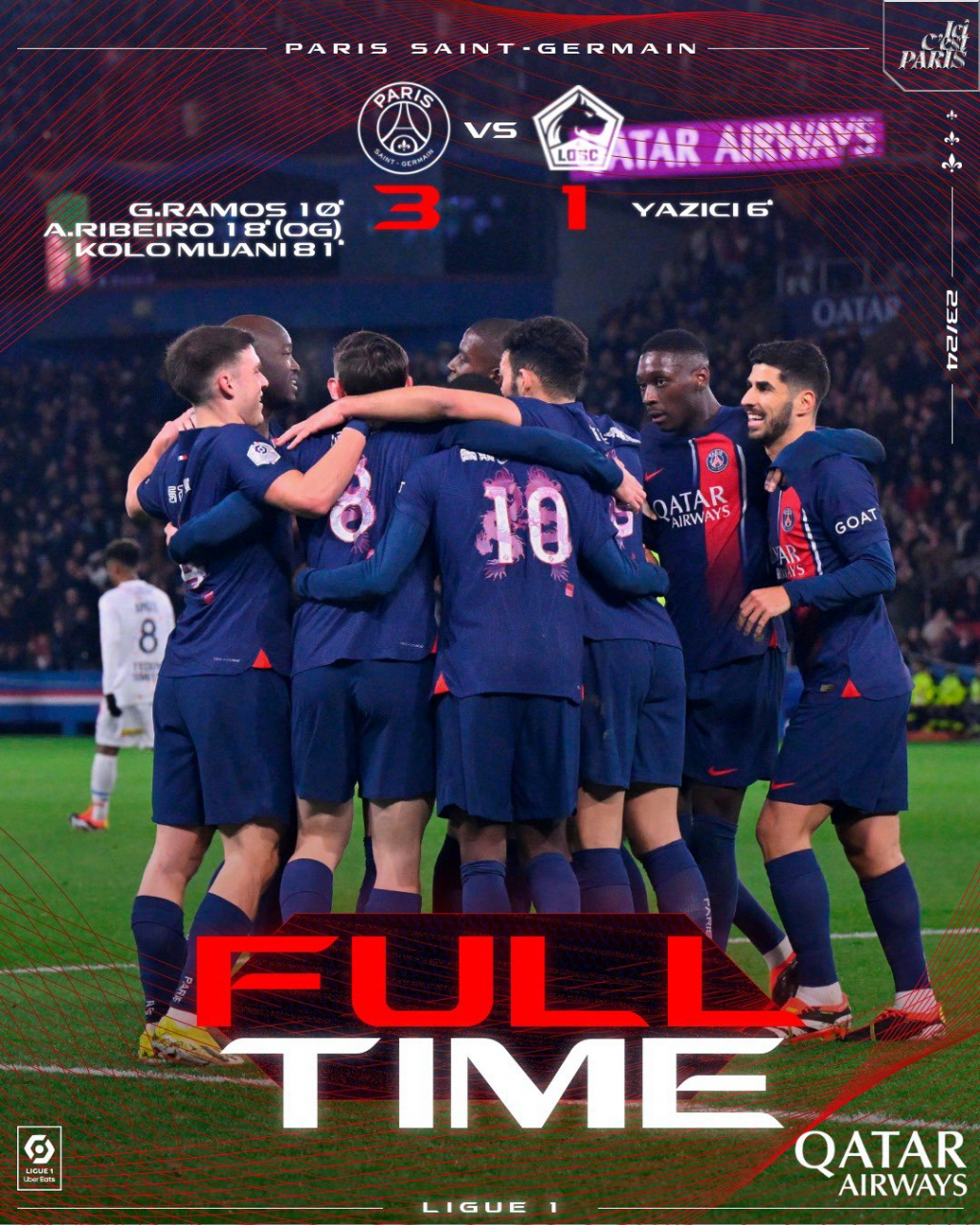 PSG는 11일(한국시간) 프랑스 파리의 파르크 데 프랑스에서 열린 2023~2024시즌 프랑스 리그1 21라운드에서 LOSC릴을 3-1로 꺾었다.