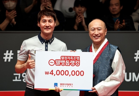 대회 한 경기서 가장 높은 애버리지를 기록한 선수에게 주어지는 '웰뱅톱랭킹'(상금 400만원)은 대회 32강서 세미 사이그너(튀르키예·휴온스)를 상대로 3.750을 기록한 '무명돌풍' 박기호가 받았다. 또 한 큐에 세트의 모든 득점인 15점(마지막 세트 11점)을 한 번에 달성하면 주어지는 'TS샴푸 퍼펙트큐'상(상금 1000만원)은 대회 16강 박주선과의 경기 2세트서 15점을 낸 권혁민이 차지했다.
