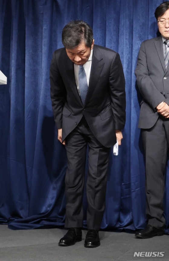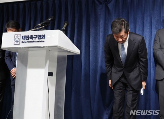 이날 정몽규 회장은 굳은 표정을 한 채 긴급 회의장에 참석했다. 긴급회의는 비공개로 진행됐다. 오전 10시에 시작해 2시간 30분 가량 진행됐고 오후 12시가 지난 뒤에야 마무리 됐다. 정몽규 회장은 오후 2시 40분경 축구회관 회의실에서 회의 결과에 대한 입장을 발표했다.