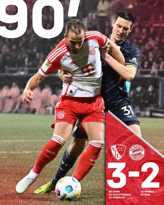 뮌헨은 19일 오전 1시(한국시간) 독일 보훔의 보노비아 루르슈타디온에서 열린 2023~2024시즌 독일 분데스리가 22라운드에서 VfL보훔에 2-3으로 졌다.