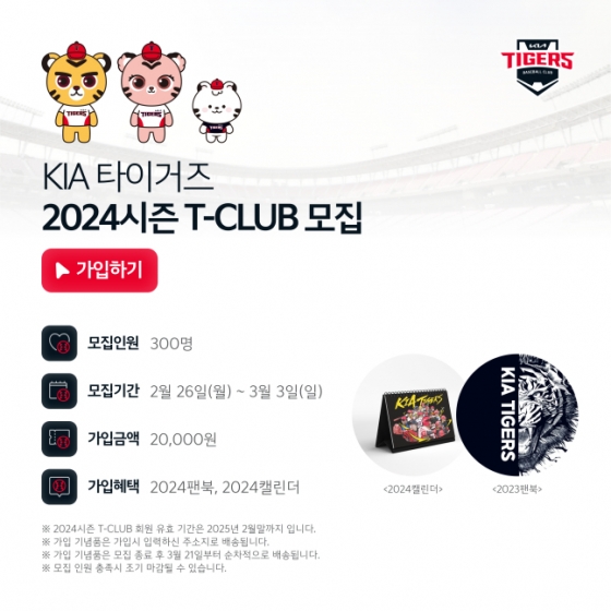 KIA 타이거즈가 오는 26일부터 3월 3일까지 홈페이지 T클럽 회원을 모집한다.