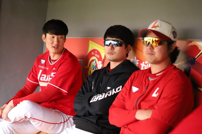 더그아웃에서는 긴장되는 프로 첫 경기를 잘 마친 신인에게 격려가 쏟아졌다. 특히 몸쪽으로 공을 때리면서 코치들이 요구한 공격적인 투구 과제도 무사히 마쳤다.