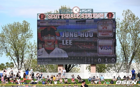 이정후는 팀이 0-2로 뒤진 1회말 선두타자로 첫 타석에 들어섰다. 스코츠데일 스타디움에 이정후를 소개하는 장내 아나운서의 음성이 나오자 샌프란시스코 팬들의 박수가 곳곳에서 터져나왔다.