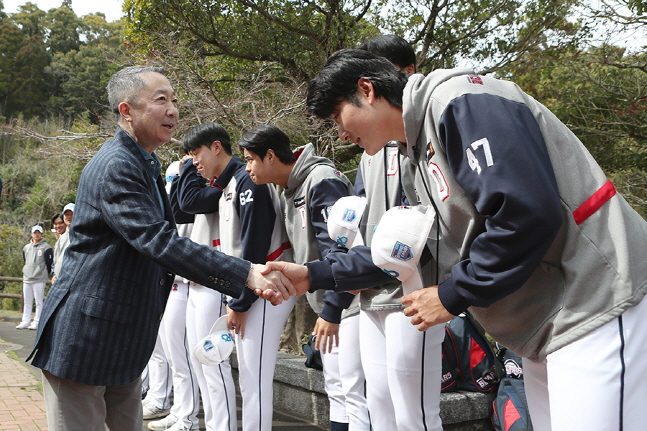 이승엽 감독은 "지난해 호주에 이어 올해 미야자키까지 해마다 방문해주신 구단주님께 감사드린다"며 "구단주님이 이처럼 팀에 애정을 보여주시니 선수단의 사기 진작에 큰 힘이 된다"고 밝혔다.