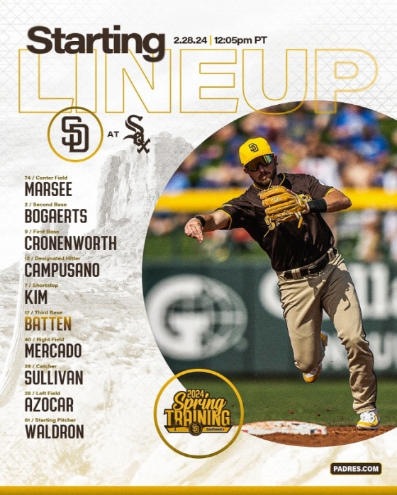 하루 걸러 격일로 경기에 출전하고 있는 김하성은 이번 시범경기에서 꾸준히 5번 타자-유격수로 기용되고 있다. 23일 LA 다저스전 1타수 1안타 1볼넷, 24일 다시 만난 다저스전에서 쉬어간 김하성은 25일 밀워키 브루어스전 1타수 1안타 1볼넷 1타점, 26일 시카고 컵스전에선 결장, 27일 클리블랜드 가디언스전에선 2타수 1안타 1볼넷 1삼진, 28일 캔자스시티 로열스전에서 쉬어가더니 다시 이날 경기에 출전했다.