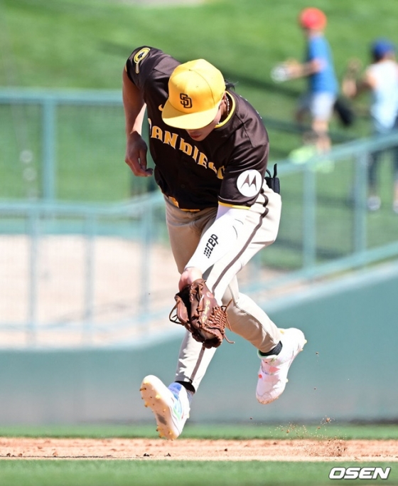 김하성은 29일(한국시간) 미국 애리조나주 글렌데일의 캐멀백 랜치 스타디움에서 열린 2024 미국프로야구 메이저리그(MLB) 시카고 화이트삭스와 시범경기에 5번 타자 유격수로 선발 출전해 3타수 1안타로 활약했다.