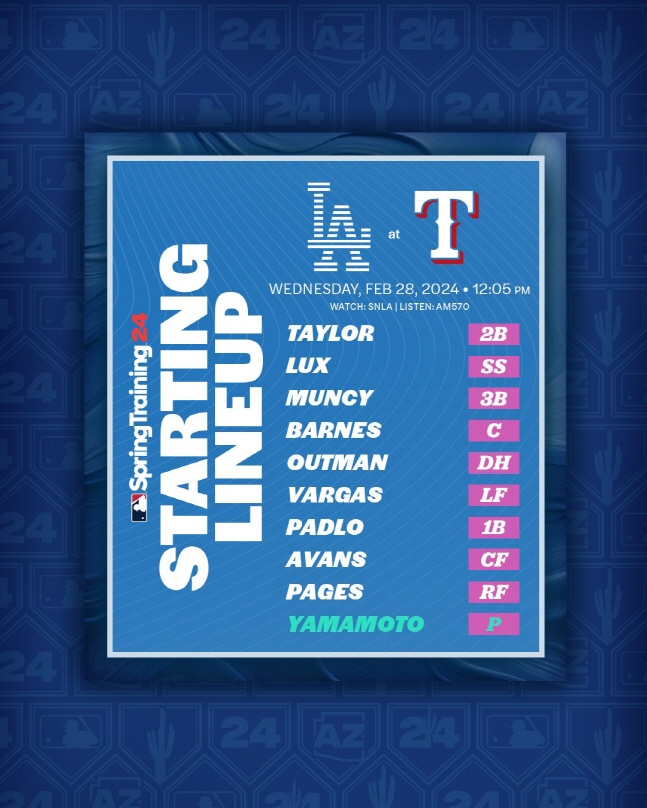 미국 매체 디 애슬레틱에서 LA 다저스를 담당하는 파비안 아르다야 기자는 지난 21일 자신의 SNS를 통해 "LA 다저스 로버츠 감독이 야마모토와 타일러 글래스노우를 (어떤 순서로든) 한국에서 열리는 개막전 시리즈에 선발로 내보낸다. 그것이 순리"라고 전했다.