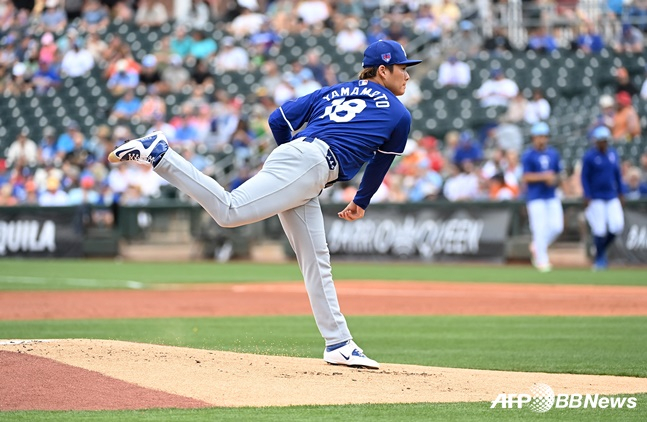 이날은 이번 스토브리그에서 포스팅 시스템(비공개 경쟁입찰)을 통해 다저스와 12년 3억 2500만 달러(4338억원)에 계약을 맺은 야마모토의 시범경기 데뷔전이었다.