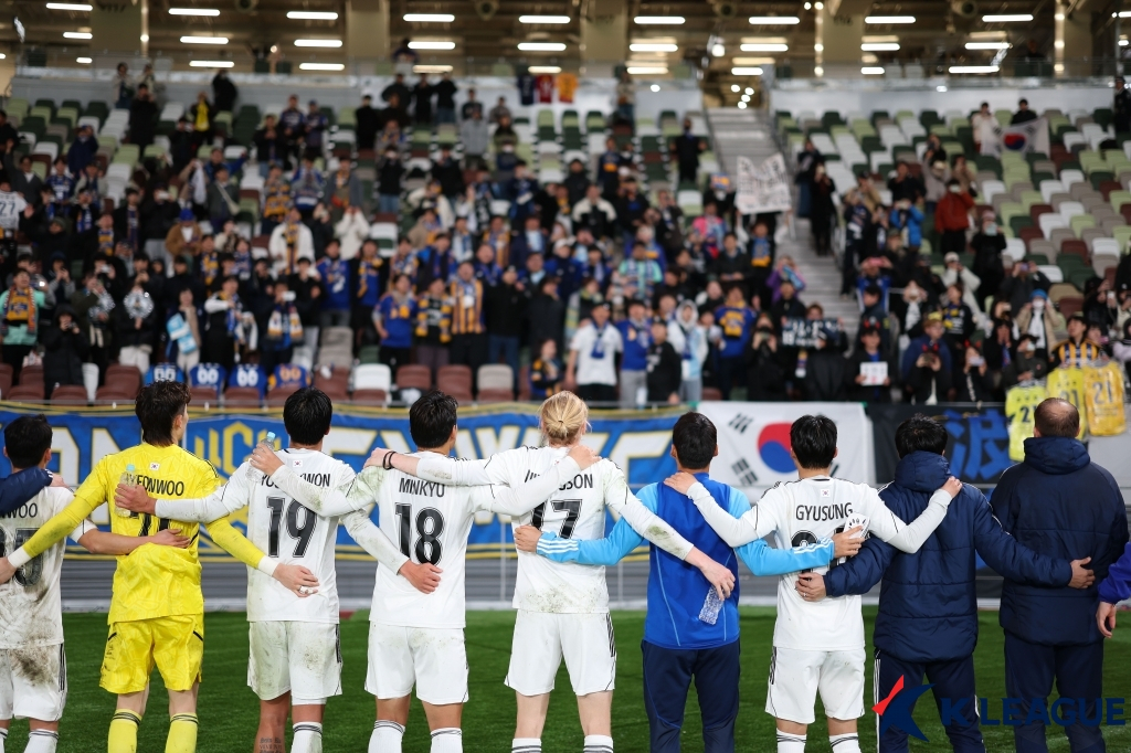 개막전에서 홍명보 감독은 주민규를 원톱 공격수로 세웠다. 장시영과 김민우, 아타루, 이규성, 고승범이 중원에 포진한다. 이명재와 설영우가 양 측면 수비수를 맡고 김영권과 황석호가 중앙 수비수로 나선다. 골키퍼 장갑은 조현우가 낀다.