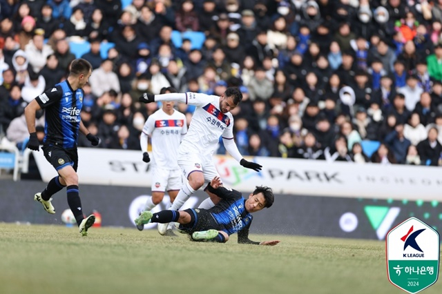 수원FC는 2일 인천축구전용경기장에서 열린 하나은행 K리그1 2024 개막 1라운드 인천과 원정경기에서 1-0 짜릿한 승리를 거뒀다.