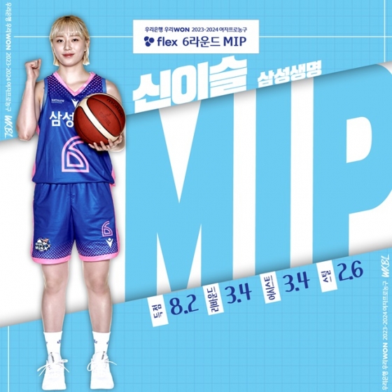 한편 WKBL 심판부, 경기 운영 요원 투표로 뽑는 기량발전상(MIP)은 삼성생명의 신이슬(24)에게 돌아갔다. 그는 총 35표 중 19표를 얻어 한엄지(BNK·8표), 박소희(하나원큐·6표), 이혜미(신한은행·2표) 등을 제치고 수상했다. 신이슬은 6라운드 5경기에 나와 평균 24분 40초를 소화하며 8.2득점, 3.4리바운드, 3.4어시스트, 2.6스틸(1위) 등을 기록했다. 그는 2022~23시즌 4라운드 이후 통산 2번째 라운드 MIP에 올랐다.