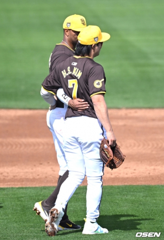 한편 김하성은 지난 23일 LA 다저스와 시범경기 개막전부터 선발 라인업에 이름을 올리며 맹활약을 펼치고 있다. 계속해서 주전들이 나서는 경기에 출장했던 김하성은 격일 간격으로 출전하다가, 이날 처음으로 연이틀 경기를 소화했다. 앞서 김하성은 LA 다저스를 상대로 1타수 1안타 1볼넷을 기록, 멀티 출루 경기를 완성했다. 이어 25일 밀워키 브루어스와 경기에서는 2루타 1개를 터트리는 등 1타수 1안타 1타점 1볼넷으로 좋은 모습을 보였다. 또 멀티 출루 성공. 여기가 끝이 아니었다. 김하성은 27일 클리블랜드 가디언스와 시범경기에서 3타석에 들어섰는데, 2타수 1안타 1볼넷의 성적을 올렸다. 마지막 7번째 타석에서 삼진을 당하기 전까지 김하성은 6타석 연속 출루와 함께 3경기 연속 멀티 출루 행진을 벌였던 김하성이었다.