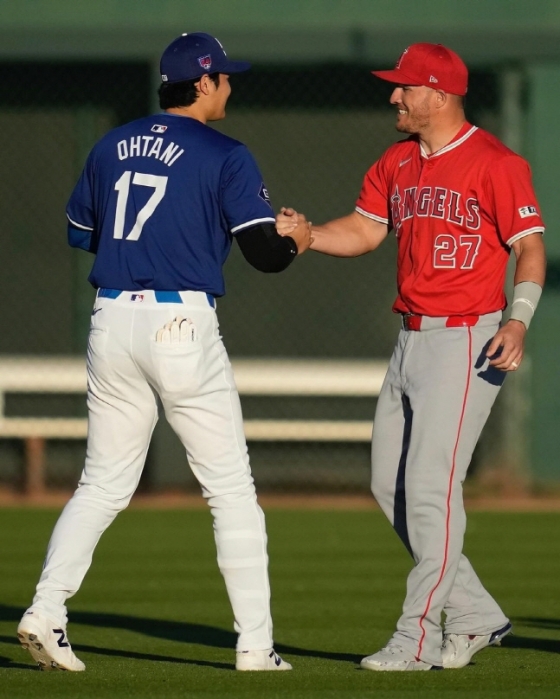 오타니 쇼헤이(30·LA 다저스)가 마이크 트라웃(33·LA 에인절스)를 만났다. 둘 도 없던 동료는 이젠 적이 됐다. 오타니는 붉은색이 아닌 낯선 푸른색 유니폼을 입고 옛 동료와 포옹을 나눴다.