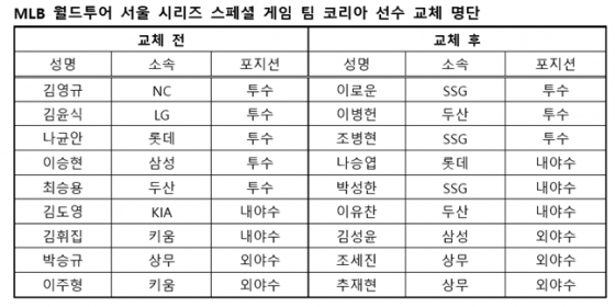 미국 메이저리그(MLB) 샌디에이고 파드리스, LA 다저스와 스페셜 게임을 치를 '팀 코리아' 선수 명단이 일부 교체돼 최종 확정됐다.