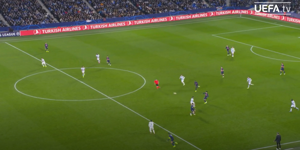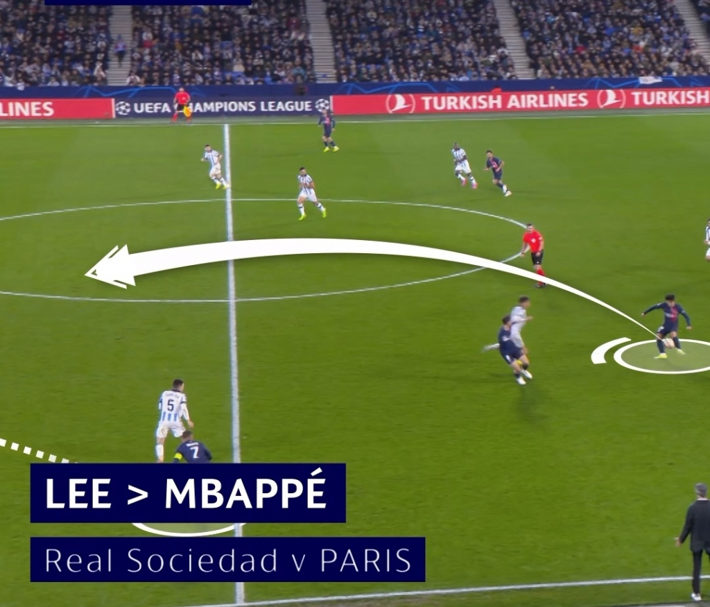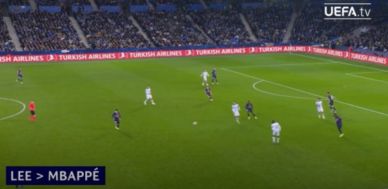 이강인의 패스 한 방에 레알 소시에다드 수비진 4명이 얼었다. 이강인은 상대 수비가 각을 좁히려 들자 감각적인 패스로 돌아 뛰는 음바페를 찾았다. 공은 레알 소시에다드 뒷공간으로 정확히 떨어졌고, 이를 잡은 음바페가 두 번의 터치 후 슈팅으로 마무리했다. 파리 생제르망은 후반 막바지 실점했지만, 2-1로 승리하며 1·2차전 합계 4-1로 챔피언스리그 8강 진출에 성공했다.