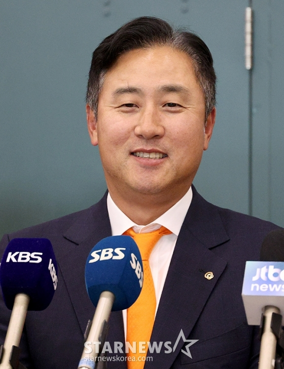 최원호 한화 감독이 지난 4일 인천국제공항 인터뷰에서 취재진의 질문에 답하고 있다. /사진=김진경 대기자