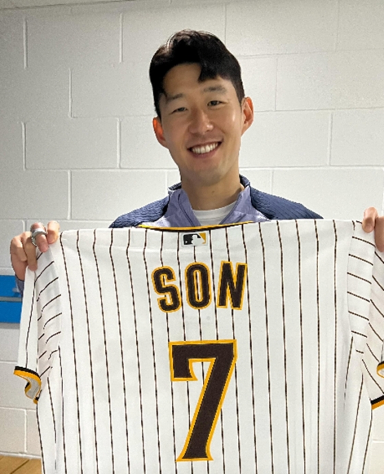 함께 공개된 영상의 썸네일에서 손흥민은 'SON'과 등번호 7번이 새겨진 샌디에이고의 유니폼을 들고 밝은 미소를 짓고 있었다. 공교롭게도 김하성의 등번호 역시 7번이어서 인연이 이어졌다.
