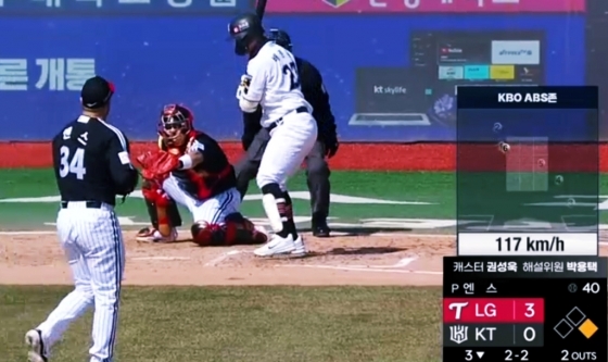 3회에도 무실점 행진을 펼친 엔스였다. 선두타자 박경수를 상대로 초구 볼을 던지긴 했으나, 이후 스트라이크-헛스윙-스트라이크로 루킹 삼진 처리했다. 계속해서 8번 타자 강현우마저 초구 파울 이후 2구째 볼을 던지긴 했으나, 3구째 스트라이크에 이어 4구째 헛스윙 삼진으로 아웃시켰다. 4구째 결정구는 커터였다. 이어 김상수를 상대로 7구 풀카운트 승부 끝에 볼넷을 허용한 엔스. 하지만 다음 타자 배정대를 상대로 초구 볼 2개를 던졌지만, 끝내 6구째 루킹 삼진으로 아웃시켰다. 이때 마지막 결정구로 커브를 던졌는데, 배정대로부터 먼 바깥쪽 스트라이크 존을 최대한 활용하는 모습이 인상적이었다. 커브가 바깥쪽 존에 걸치며 ABS 존의 스트라이크를 이끌어냈다.