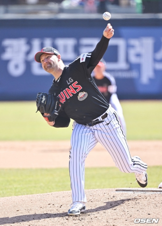 엔스는 9일 수원 KT 위즈파크에서 펼쳐진 KT 위즈와 2024 신한은행 SOL Bank KBO 시범경기에 선발 등판, 4이닝 동안 4피안타(1피홈런) 1볼넷 8탈삼진 2실점으로 자신의 몫을 다했다. 이날 LG는 엔스의 호투를 앞세워 KT를 5-2로 제압, 기분 좋은 시범경기 출발을 알렸다.