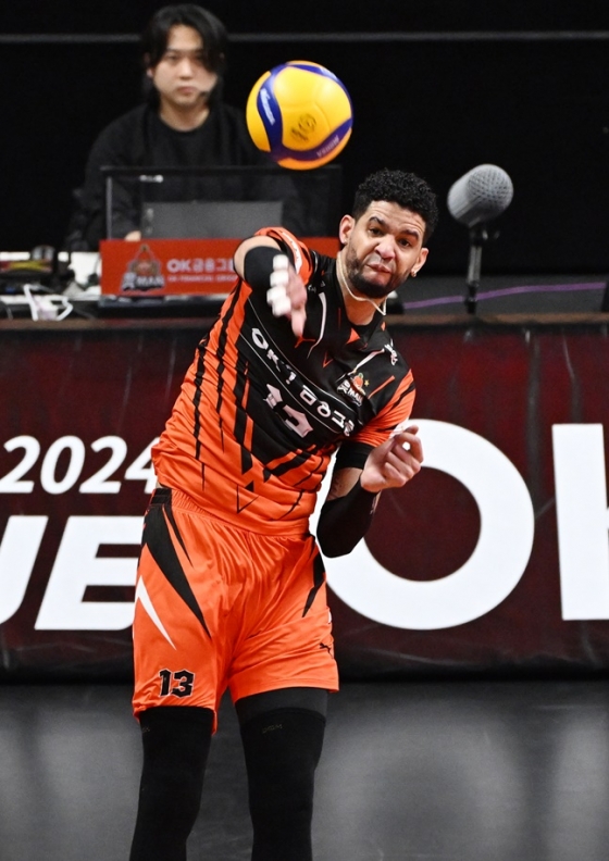 오기노 마사지 감독이 이끄는 OK금융그룹은 10일 경기도 안산 상록수체육관에서 열린 인천 대한항공과 도드람 2023~2024 V리그 남자부 마지막 홈경기에서 세트스코어 3-2(25-21, 20-25, 25-20, 22-25, 15-12)로 이겼다.