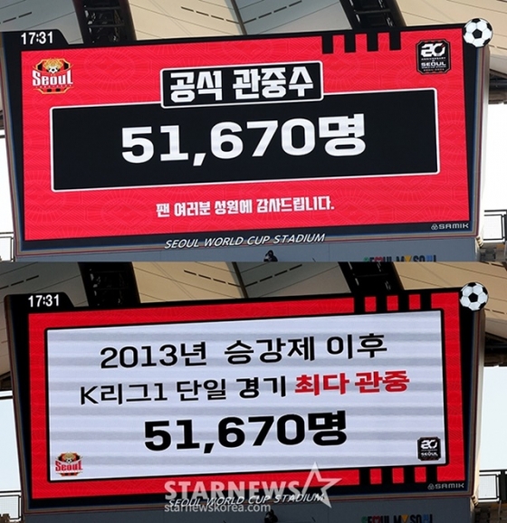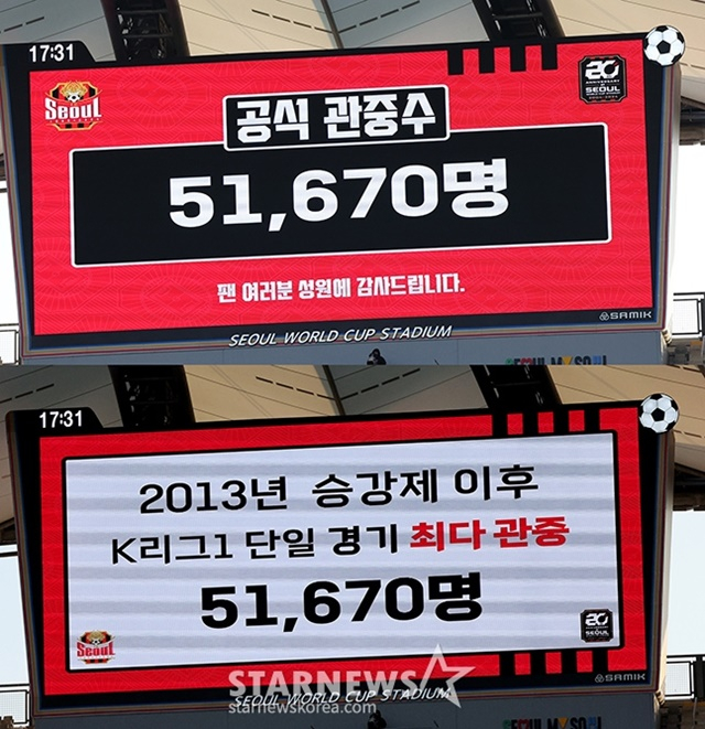 이날 경기는 관중 5만 1670명이 들어찼다. 2018년 유료 관중 집계이후 단일 경기 최다 관중 기록이다. 서울은 지난 해 4월 유명 가수 임영웅이 시축으로 나선 대구FC전에서 관중 4만 5700명을 기록, 이 부문 신기록을 썼다. 1년 만에 이를 뛰어넘었다. 린가드 효과였다. 이날 린가드가 교체로 들어가기 위해 라인 밖에서 경기를 준비하자 엄청난 환호가 쏟아지기도 했다.