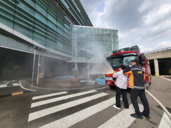 또한 화재 신고, 비상시 대피, 대피 후 조치 등에 관한 이론교육과 더불어 소화기 및 소화전을 활용한 화재진압 실습 교육도 시행하였다.