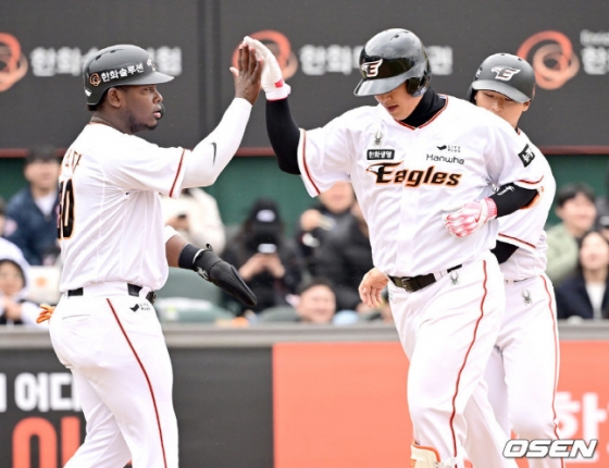 1실점하며 시작했지만 타선은 류현진의 부담을 완전히 지워줬다. 한화는 1회말 최인호와 페라자의 연속 볼넷에 이어 1사 1,2루에서 노시환의 우월 역전 스리런포로 빅이닝의 시작을 알렸다. 이후 타자 일순하며 1회에만 4안타 6사사구를 묶어 9점을 만들어냈다.