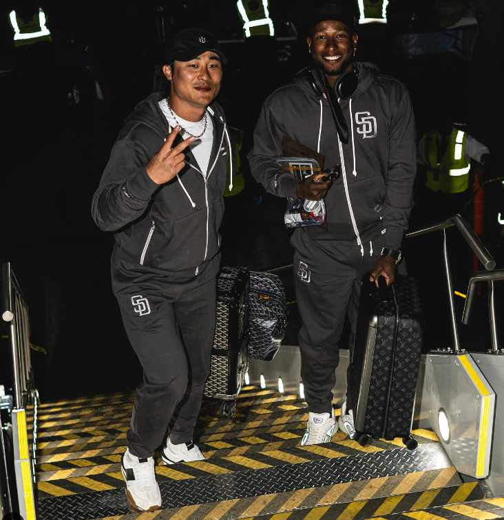 샌디에이고가 공개한 사진과 영상 등에는 샌디에이고 선수들이 전세기에 탑승하는 모습이 담겨 있다. 샌디에이고를 대표하는 코리안 메이저리거인 김하성과 고우석을 비롯해 페르난도 타티스 주니어와 매니 마차도 등 팀을 대표하는 선수들이 밝은 표정을 짓고 있다.