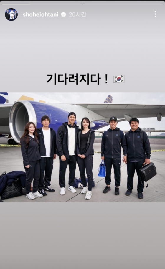 그럼에도 오타니는 이에 아랑곳하지 않았다. 한국으로 떠나기 전 비행기 앞에서는 아내 다나카와 동료 선수들과 함께 찍은 사진을 공개하며 "기다려지다!"라는 한글과 함께 또 한 번 태극기 태그를 걸었다. 한국에 착륙하기 직전에는 인천 상공을 찍으며 태극기 태그를 걸며 설렘을 한껏 표현했다. 물론 오타니가 평소에도 팬서비스가 좋은 선수로 유명하지만, 한국 도착 전부터 태극기 태그를 수차례 걸며 SNS를 올린 선수는 LA 다저스와 샌디에이고 양 팀 선수단 중에서도 유일하다.
