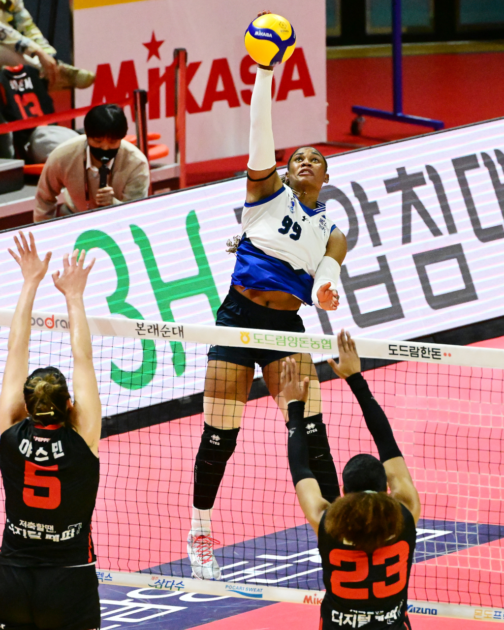 특히 승부처에서 모마의 백어택이 현대건설을 구해냈다. 24-24 듀스 상황에서 모마는 백어택을 연달아 성공했다. 현대건설은 26-24로 2세트를 따내며 세트 스코어 2-1로 앞서나갔다.