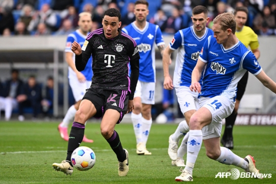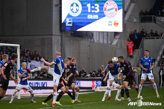 그런데 뮌헨도 가만히 있지 않았다. 전반 36분 무시알라가 케인의 패스를 받아 동점골을 터뜨렸다. 케인의 트래핑 실수가 오히려 옆에 있던 무시알라에게 공이 연결됐다. 무시알라는 기회를 놓치지 않고 침착한 슈팅을 날려 골망을 흔들었다. 전반 추가시간에는 케인이 헤더로 역전골을 기록했다. 다름슈타트는 전반 마지막 공격이 크로스바를 강타했다. 뮌헨은 가슴을 쓸어내렸다.