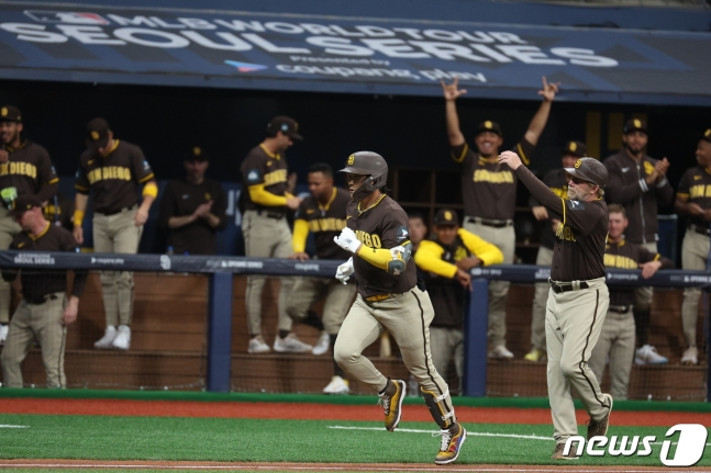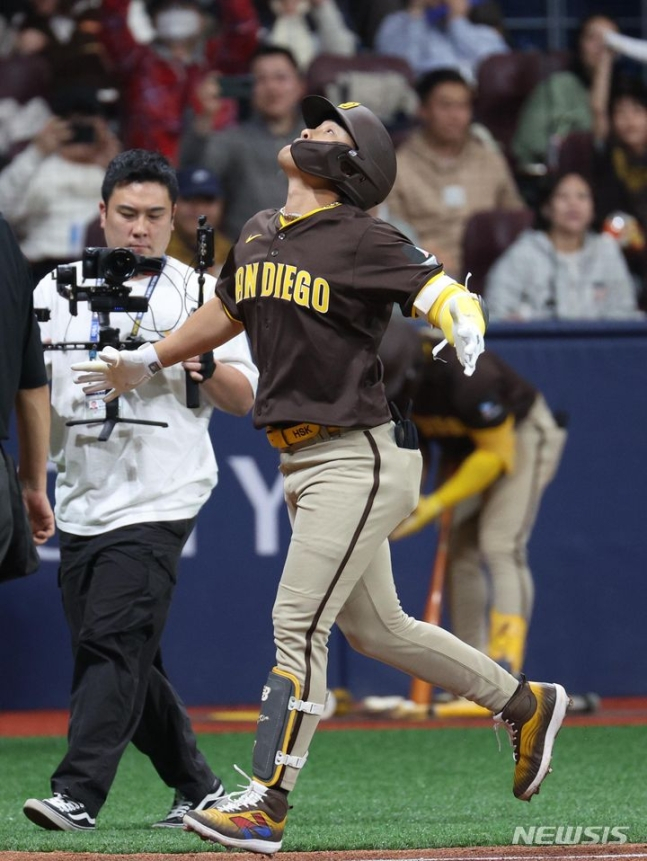 전날 '한국 야구 국가대표팀 '팀 코리아'와 샌디에이고의 연습 경기에서는 많은 한국 야구팬들이 김하성의 복귀를 반겼다. 김하성의 응원가가 4년 만에 고척돔에 울려퍼졌고, 특별한 경험이었다. 이에 김하성은 "너무 행복했던 것 같다. 사실 타석에 집중하느라 응원가는 못 들었는데 그래도 좋았다"고 소감을 밝혔다.