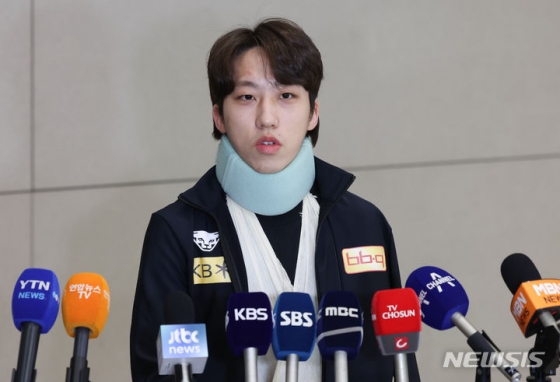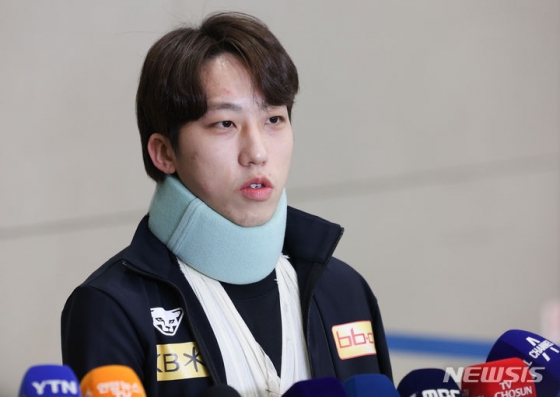 황대헌과 충돌에 대한 질문에는 "지금은 내가 드릴 수 있는 말씀이 없다"며 말을 아꼈다.